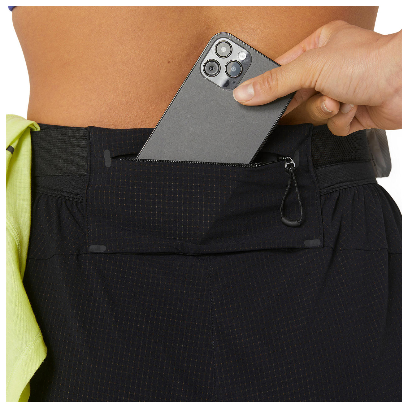 - zijsplitten; zakken van mesh; zak voor mobiele telefoon; 2x lusjes en extra elastische band voor gels of accessoires