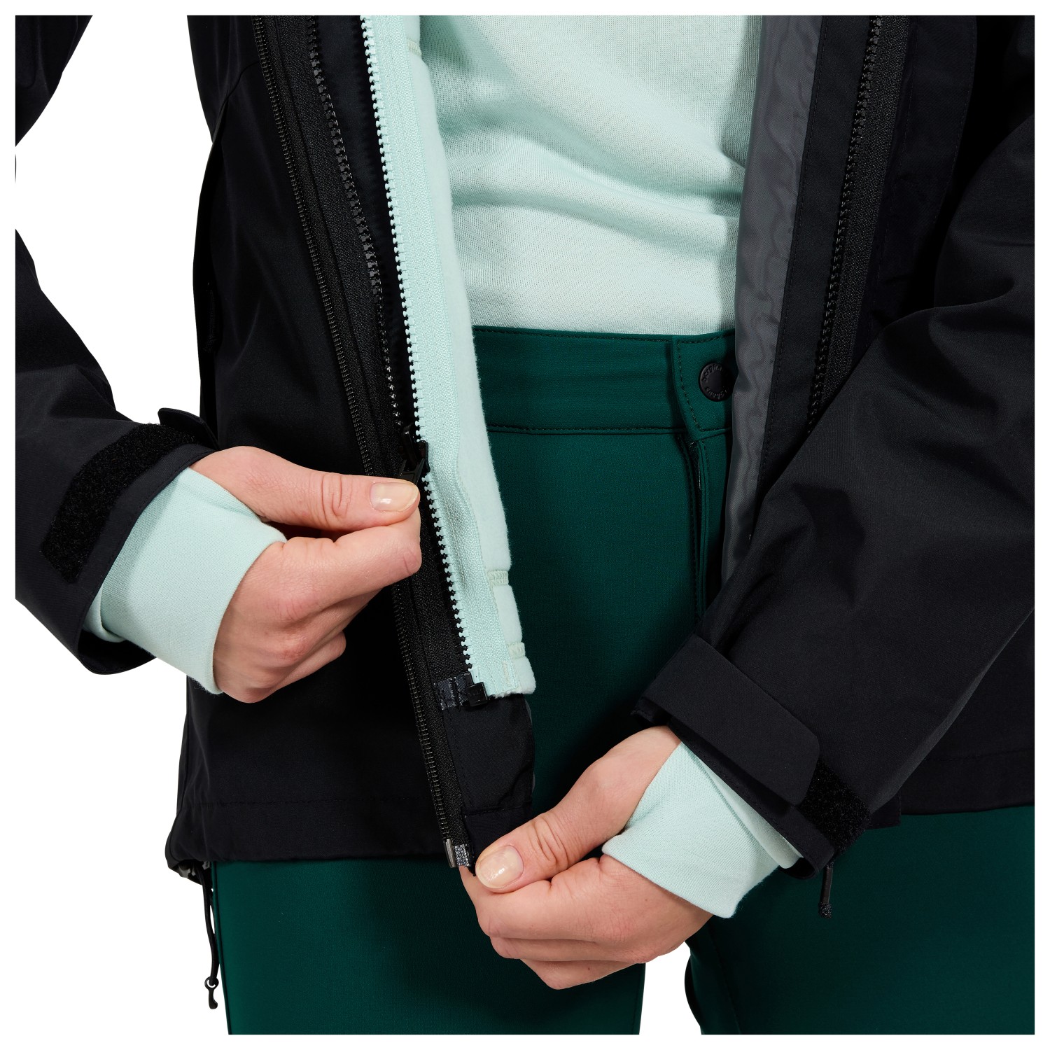 - geborduurd logo, klittenbandsluitingen aan de mouwen, waterafstotende ritssluitingen