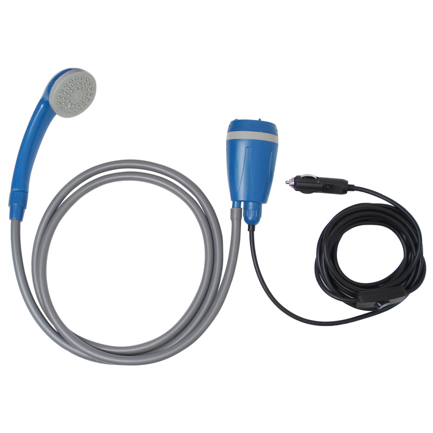 - douchekop met slang; snoer (5 m); 12 V dompelpomp; 12 V ZA-stekker; houder met zuignap voor douchekop; opbergtas