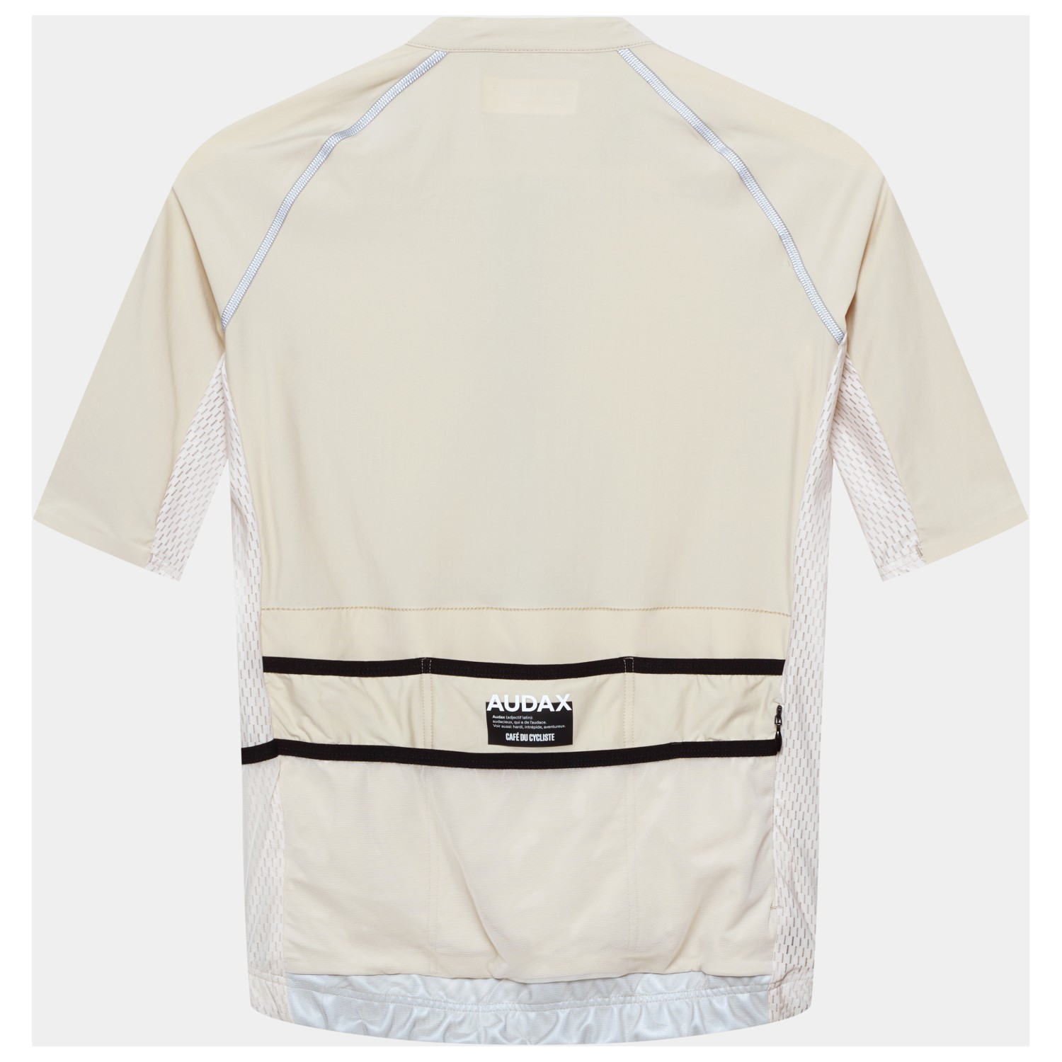 - geborduurd logo, raglanmouwen, reflecterende details, siliconen boord, verlengde achterkant