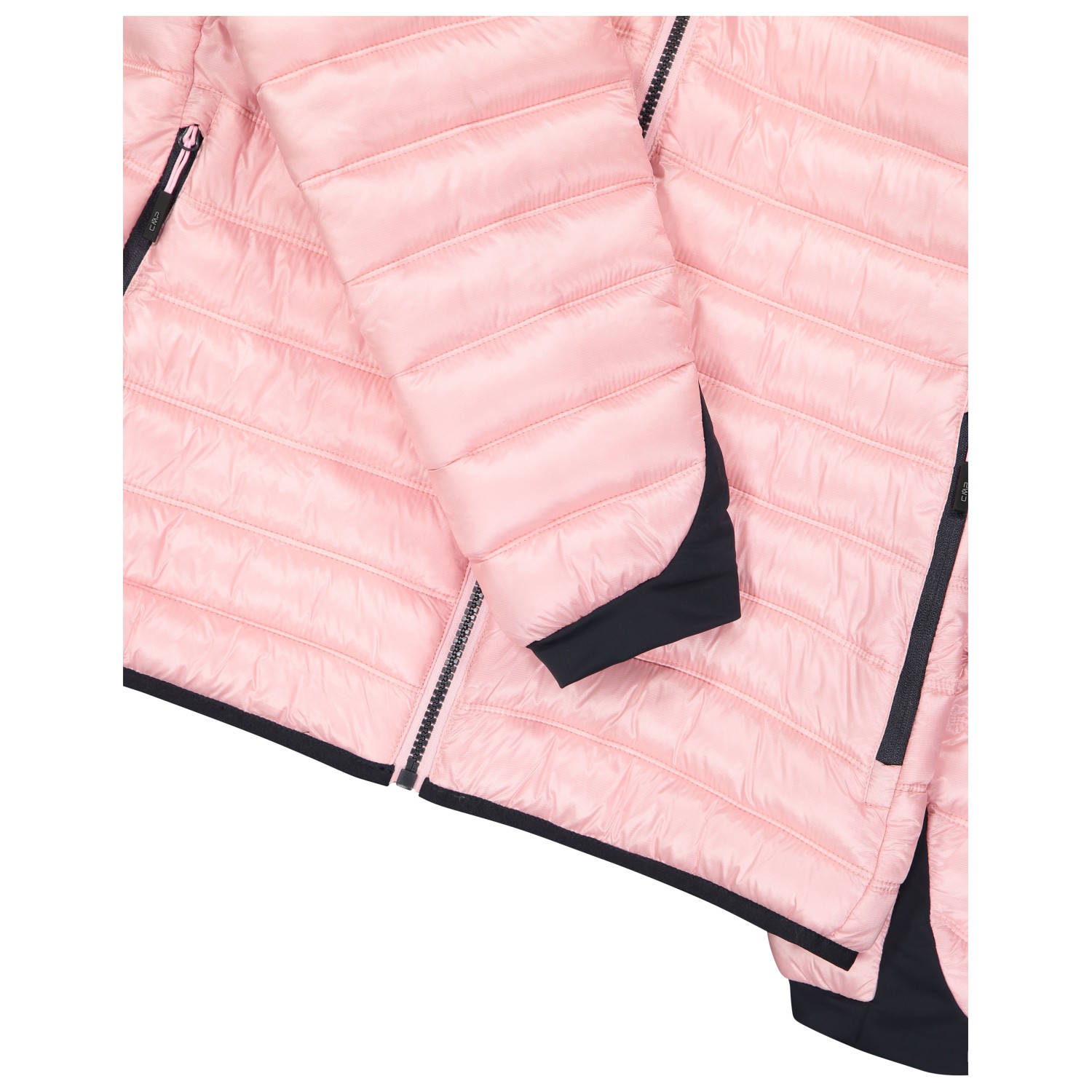 - duimgaten, elastische mouwboorden, elastische zoom, logopatch, opstaande kraag