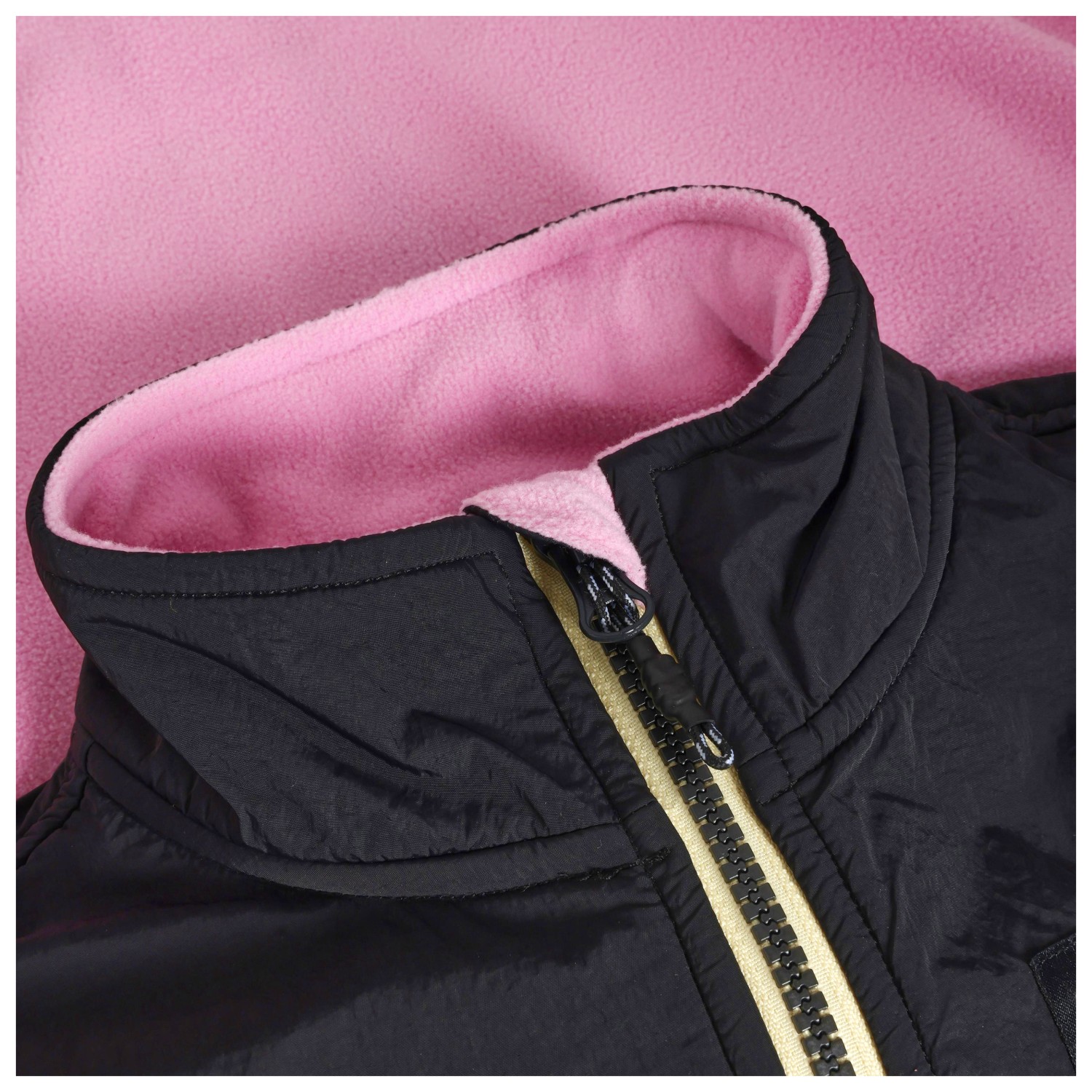 - doorlopende ritssluiting vooraan, met kinbescherming