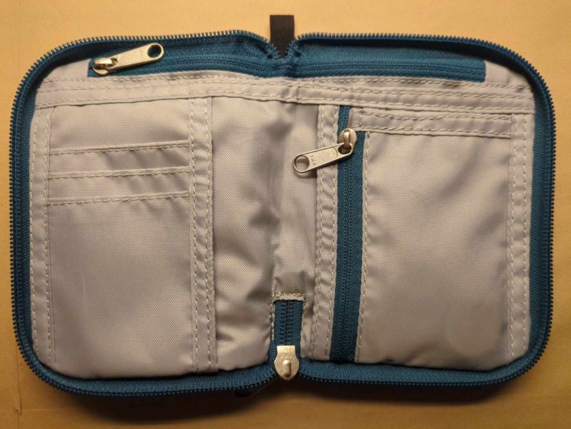 - rondomlopende ritssluiting; lang steekvak; geldvakje met rits