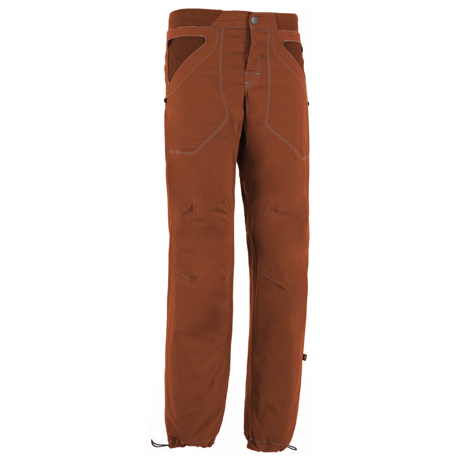 - borstelhouder, elastische tailleband, geborduurd logo, verstelbaar boord aan de pijpen, voorgevormde knieën