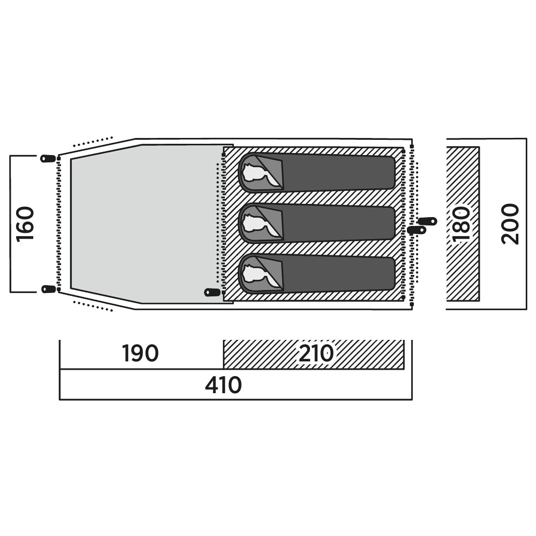 - 410 x 200 x 115 cm