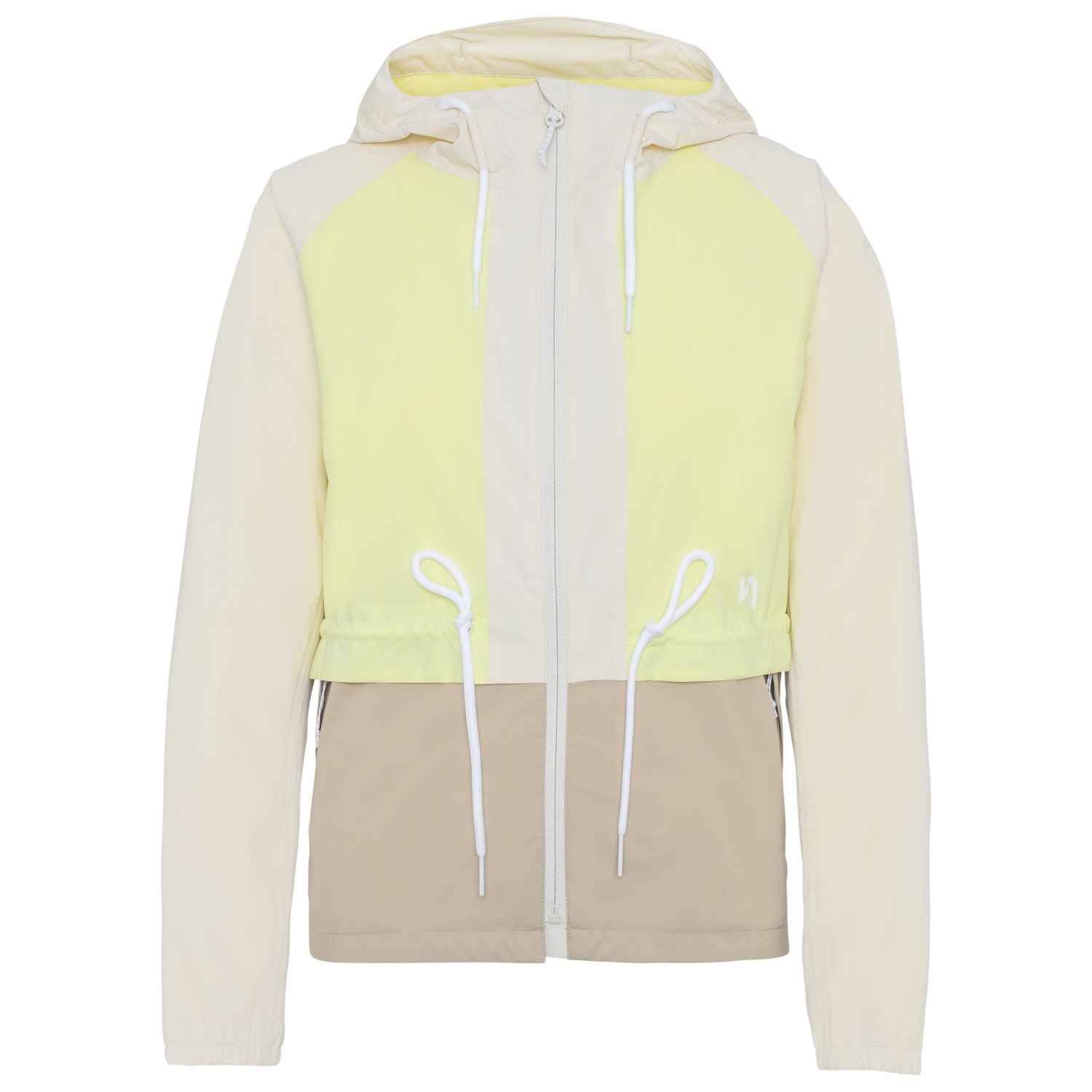 - elastische mouwboorden, trekkoord in de taille, raglanmouwen, verlengde achterkant