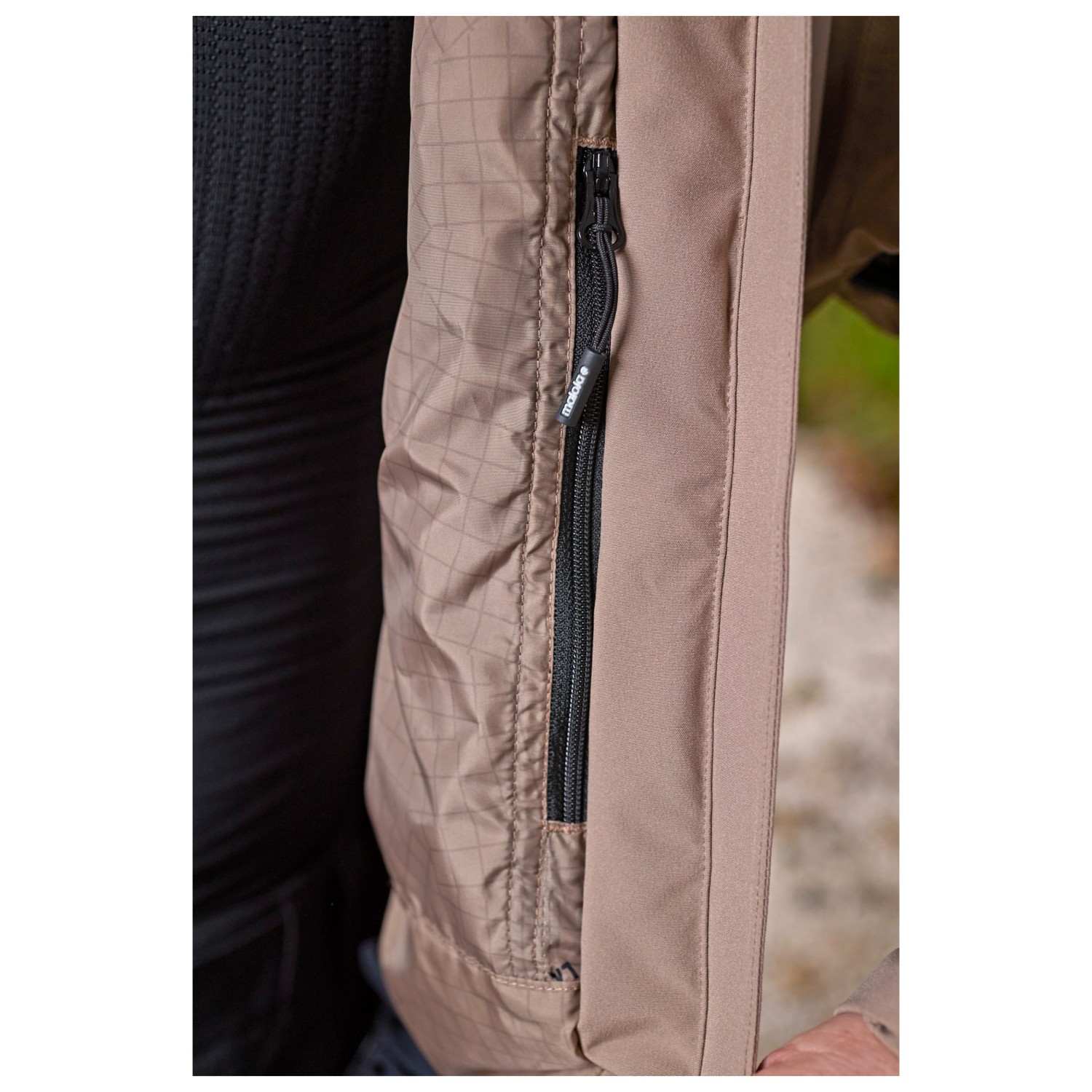 - elastische manchetten binnenin, klittenbandsluitingen aan de mouwen, trekkoord in de zoom, waterafstotende ritssluitingen