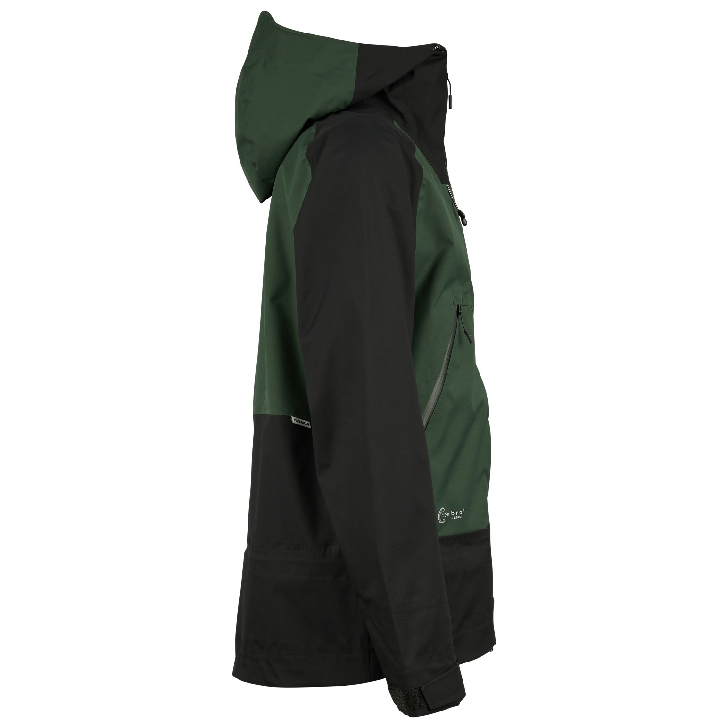 - afneembare sneeuwvanger, elastische manchetten binnenin, broek-jasverbindingssysteem, klittenbandsluitingen aan de mouwen, trekkoord in de zoom, waterafstotende ritssluitingen