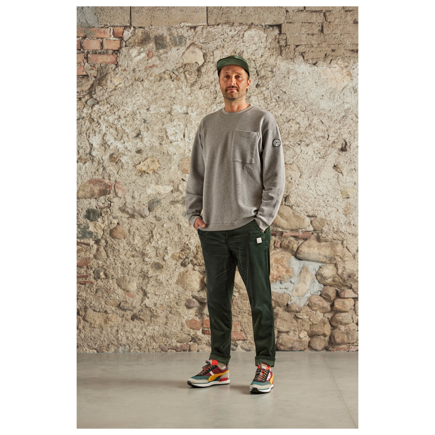 - elastische mouwboorden, elastische zoom, logopatch, ronde hals