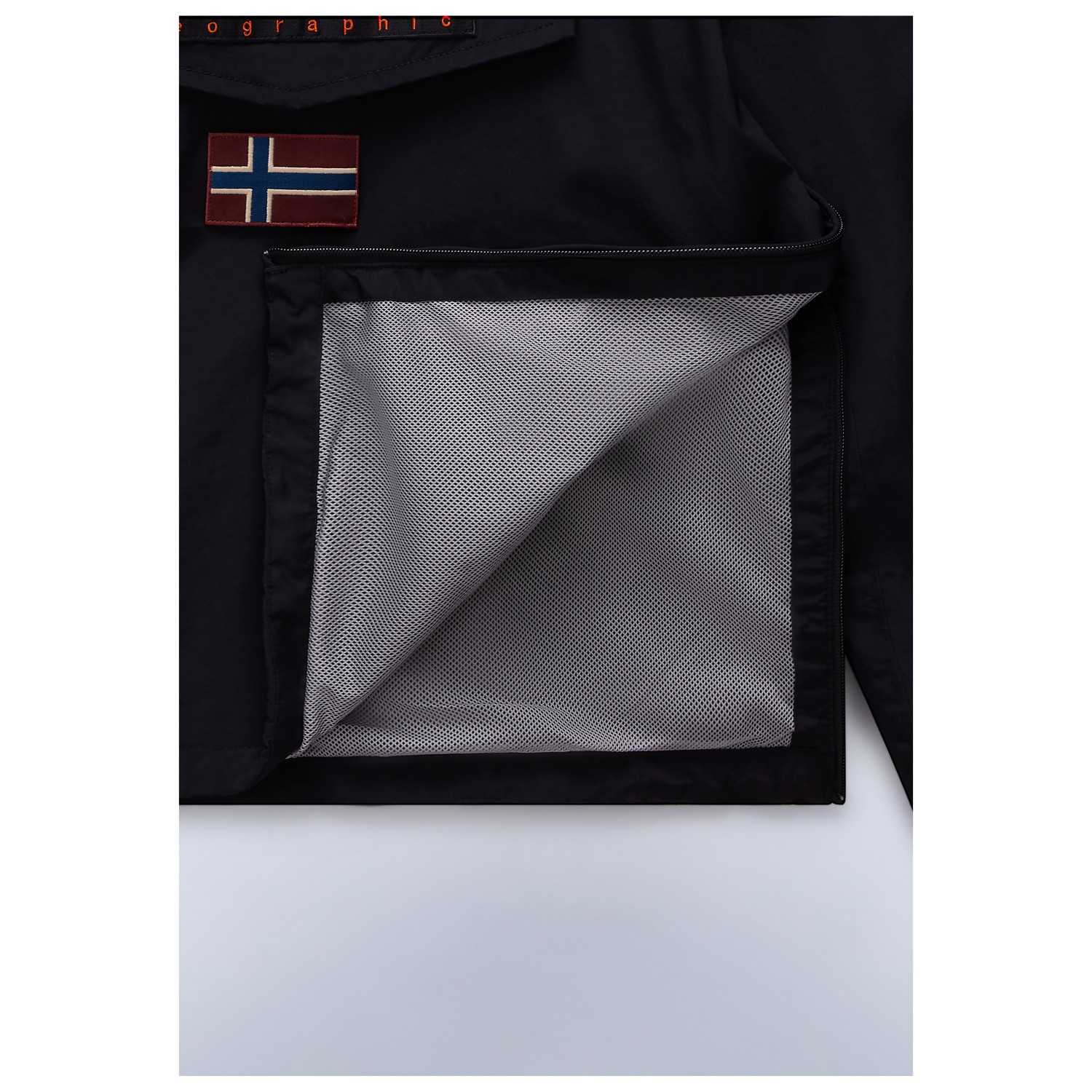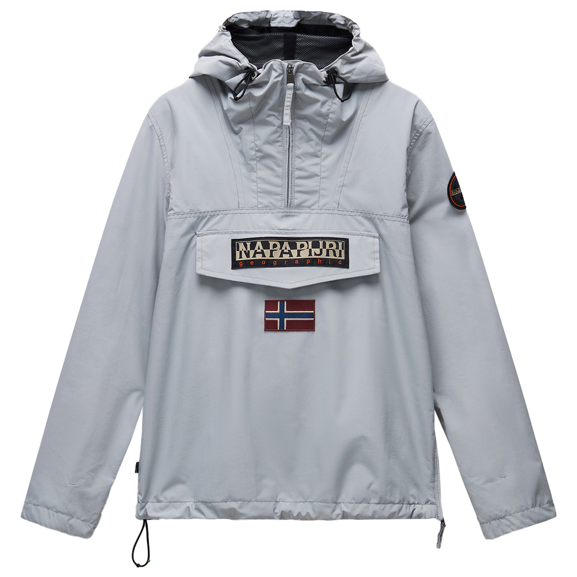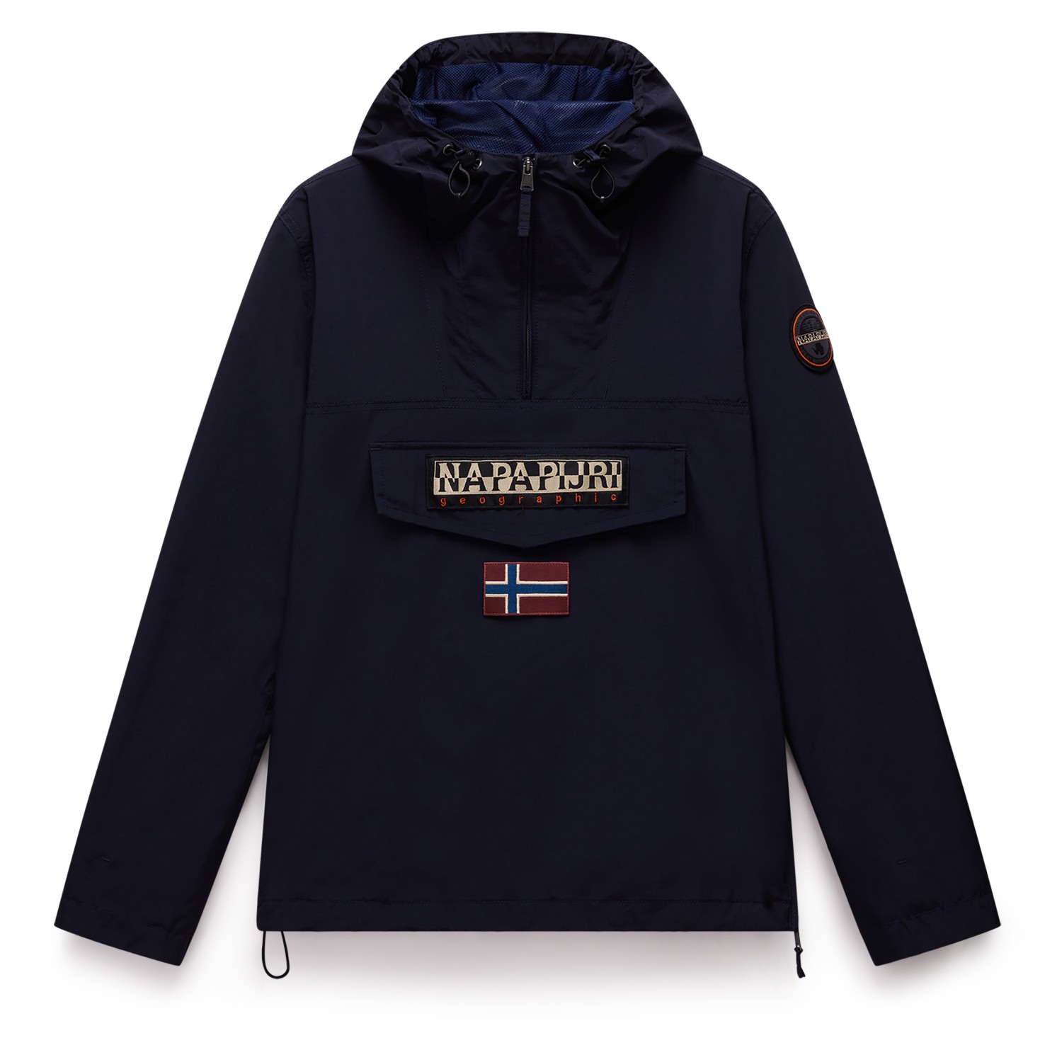 - elastische manchetten binnenin, elastische zoom, trekkoord in de zoom, logopatch