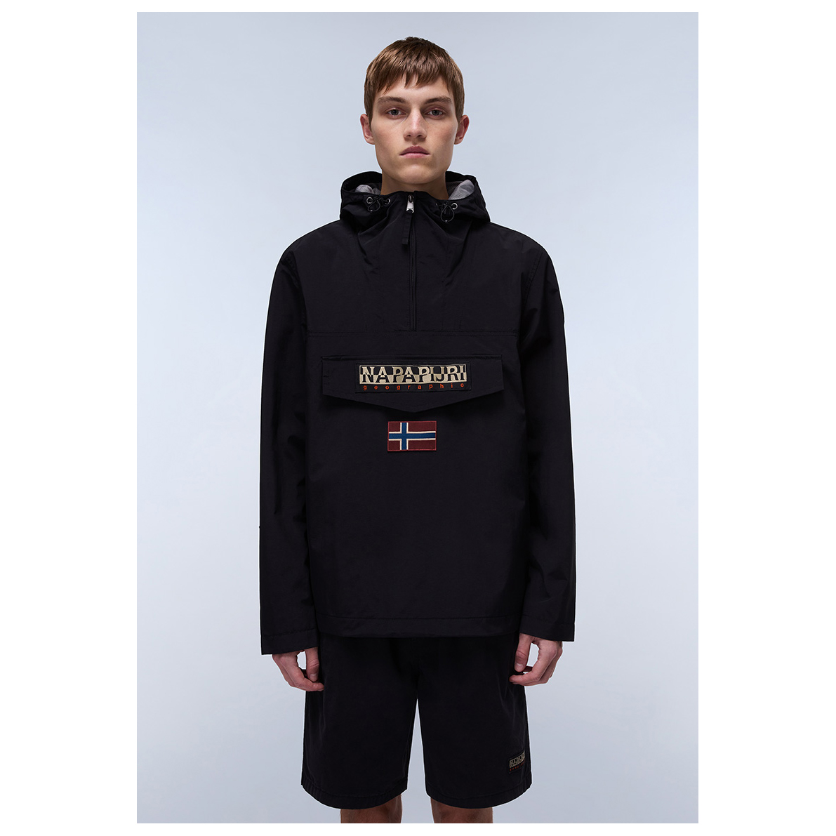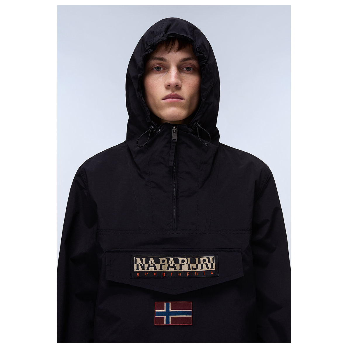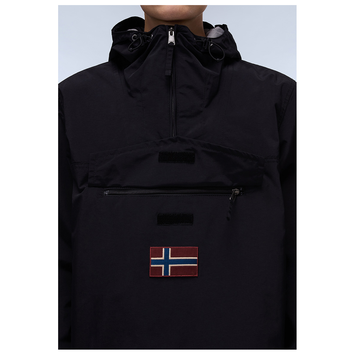 - elastische manchetten binnenin, elastische zoom, trekkoord in de zoom, logopatch