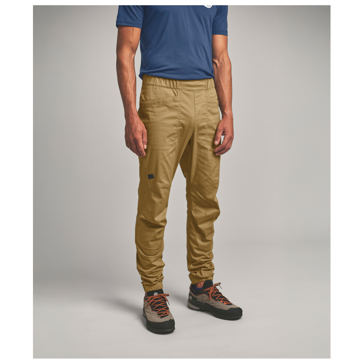 - elastische tailleband, verstevigde knieën, verstelbare tailleband, voorgevormde knieën, inzetstuk in kruis