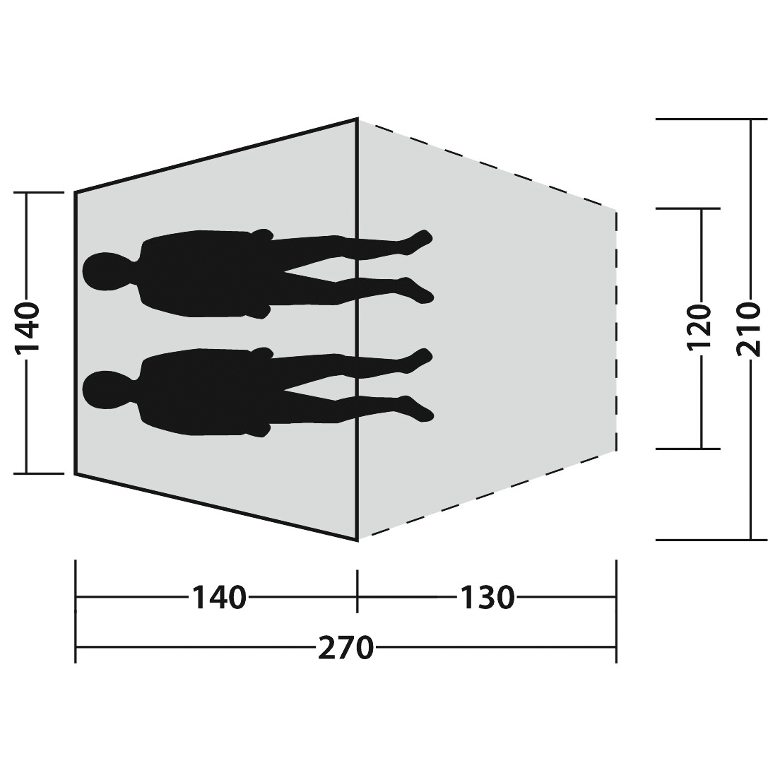 - 140 x 210 x 135 cm (l x b x h)