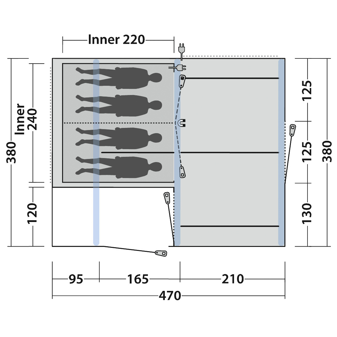 - 470 x 380 x 225 cm (l x b x h)