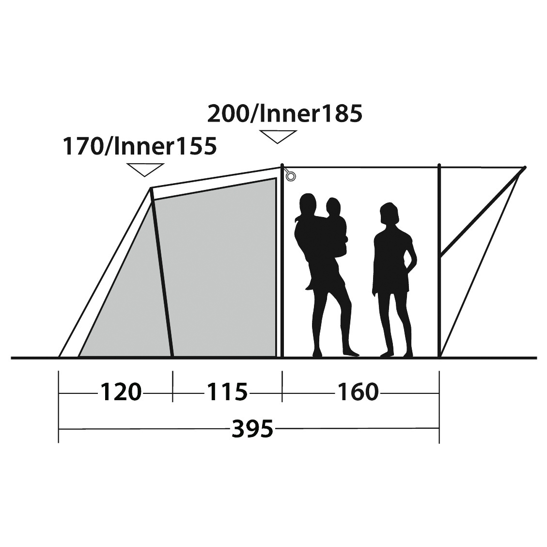- 395 x 260 x 200 cm (l x b x h)