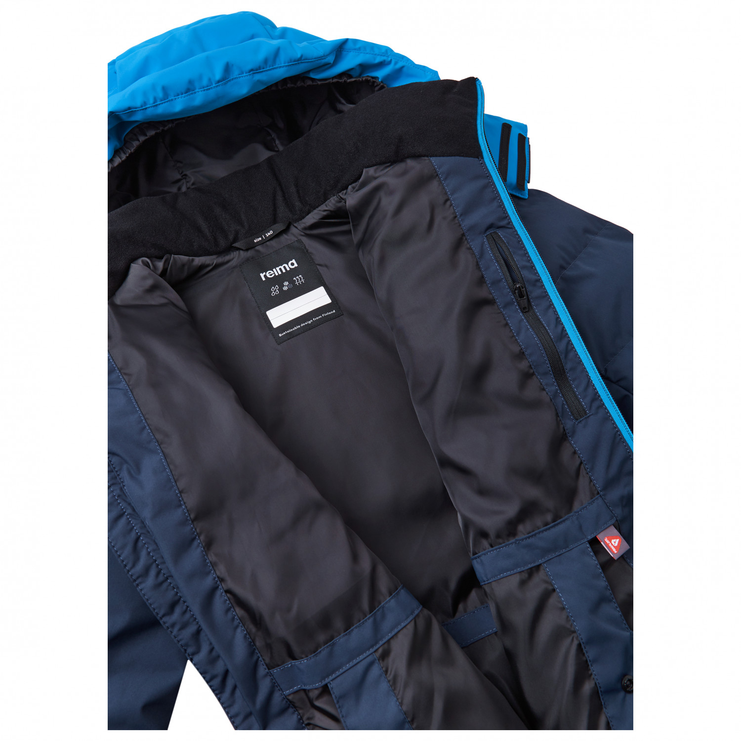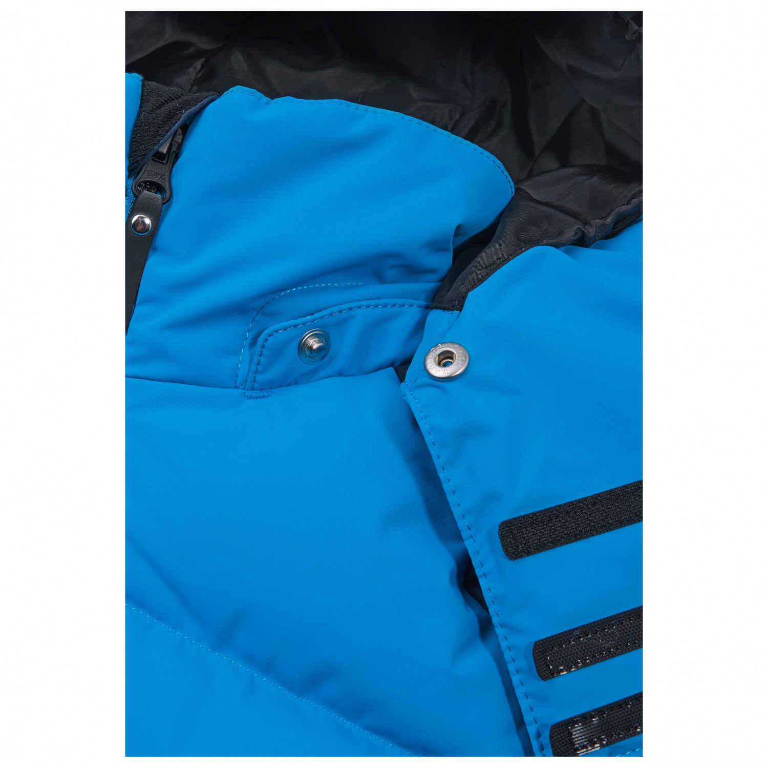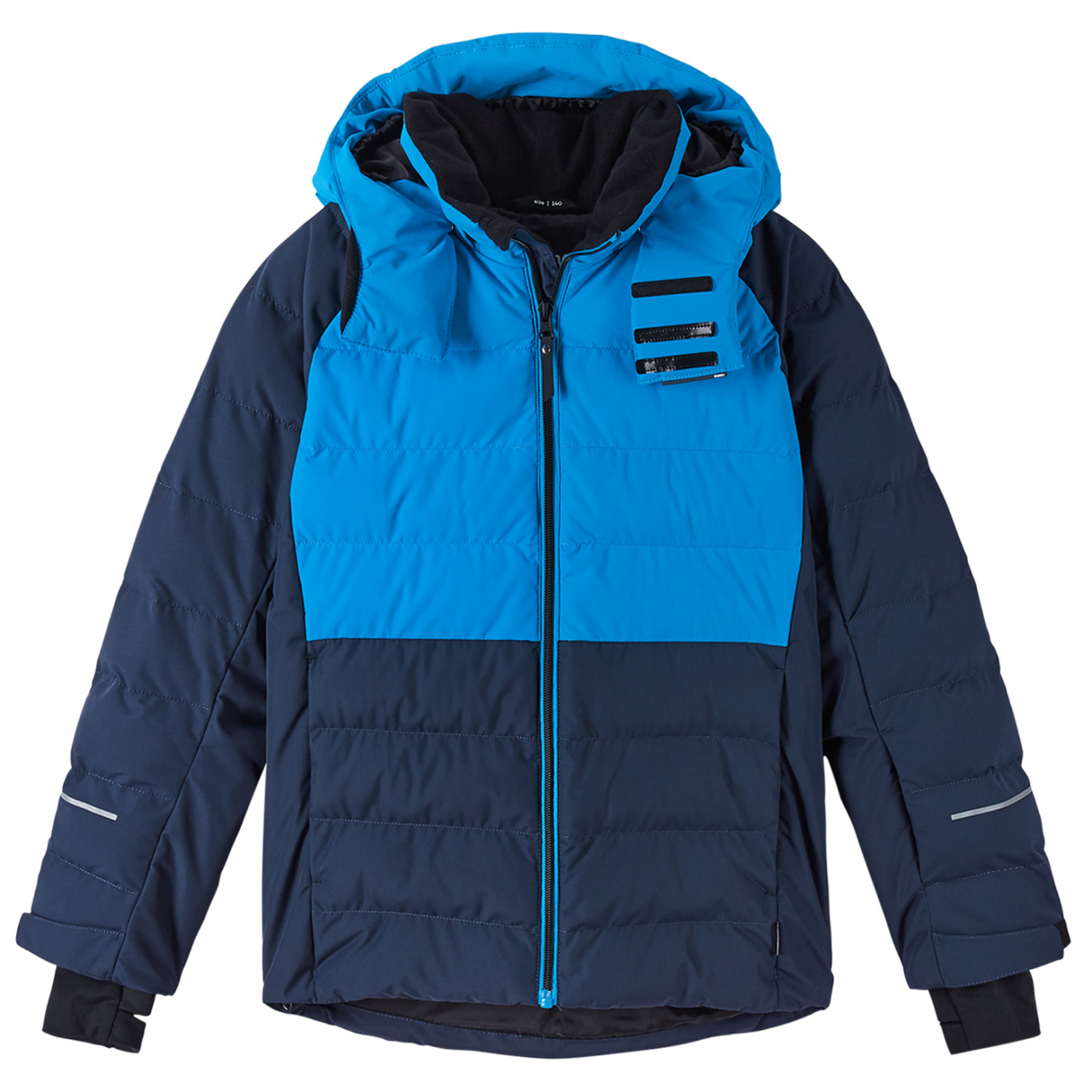 - duimgaten, elastische manchetten binnenin, broek-jasverbindingssysteem, reflecterende details, sneeuwvanger, verlengde achterkant, verstelbare manchetten, verstelbare tailleband