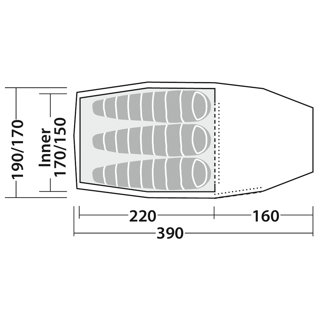 - 390 x 190 x 110 cm (l x b x h)