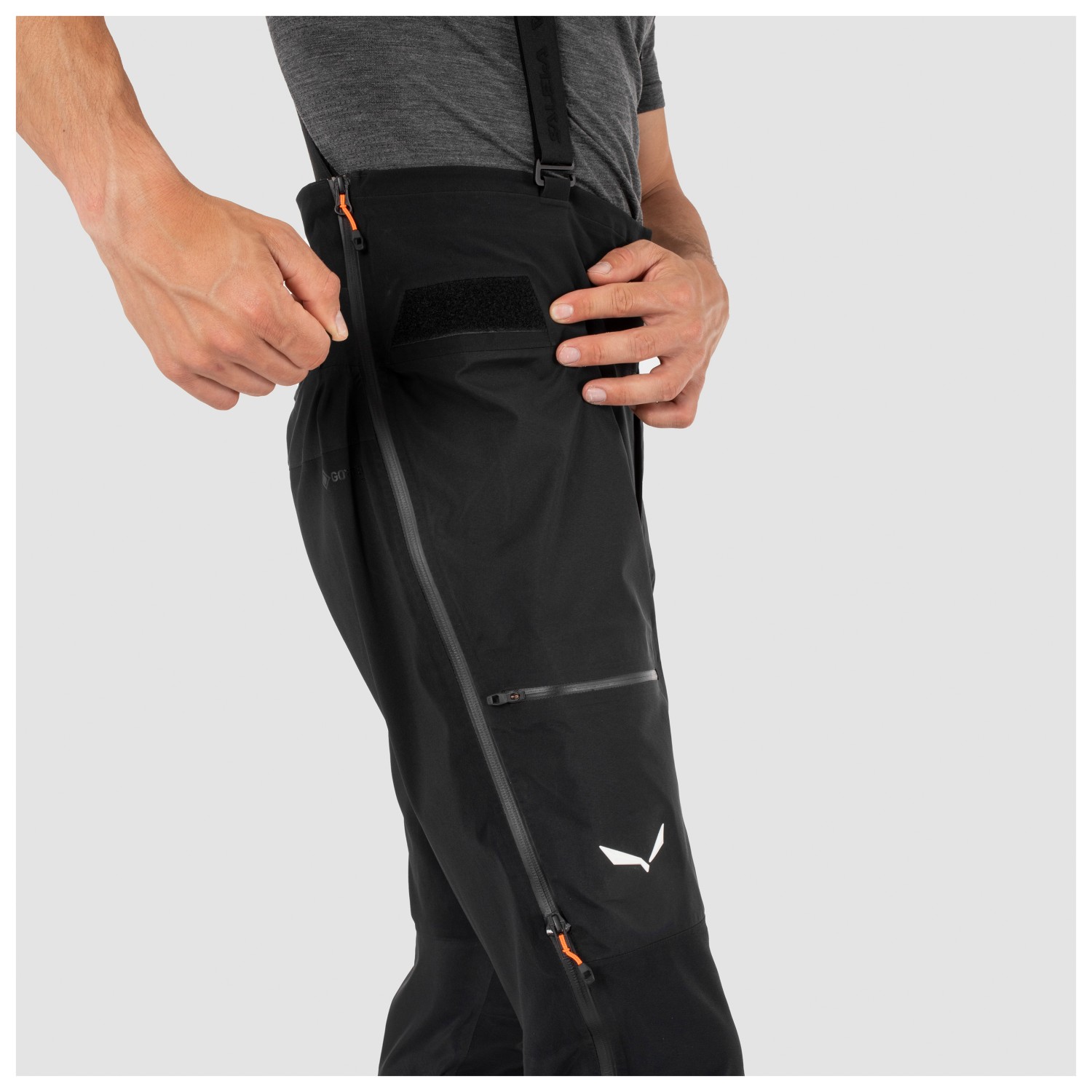 - afneembare bretels, geïntegreerde gamaschen, waterafstotende ritssluitingen, inzetstuk in kruis