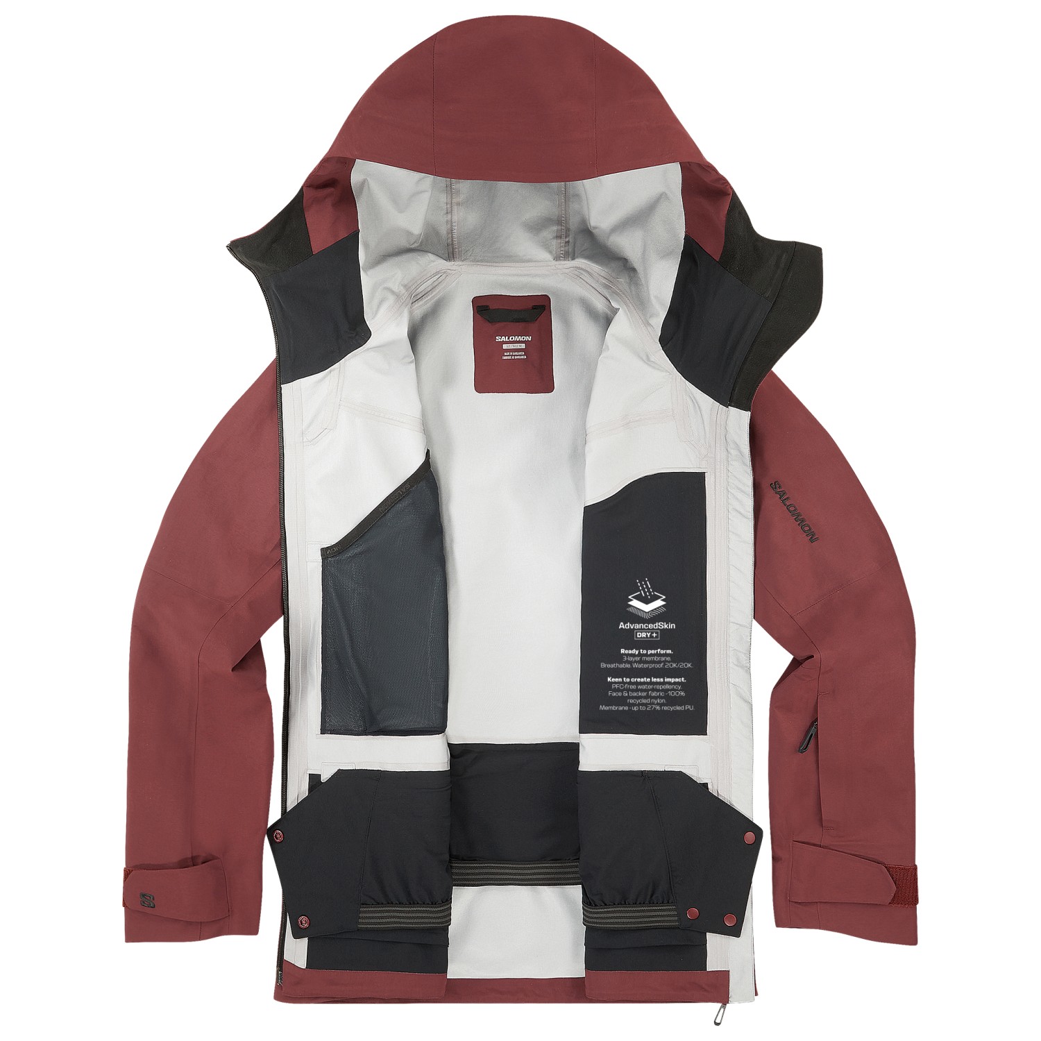 - geïntegreerd brillendoekje, klittenbandsluitingen aan de mouwen, trekkoord in de zoom, sneeuwvanger