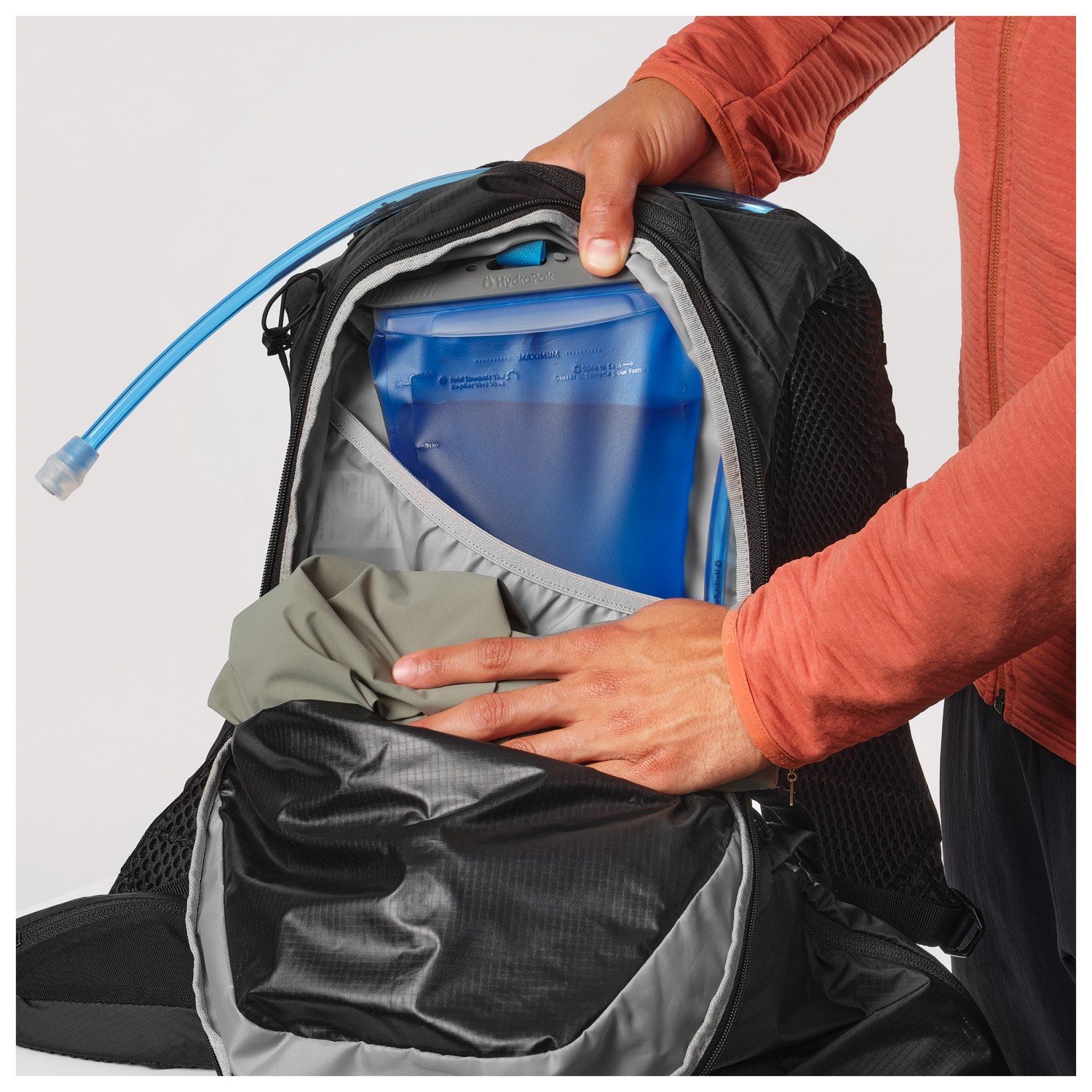 - bevestiging voor wandelstokken, fleshouder, zak op de heupband, binnenvak, voorvak met ritssluiting