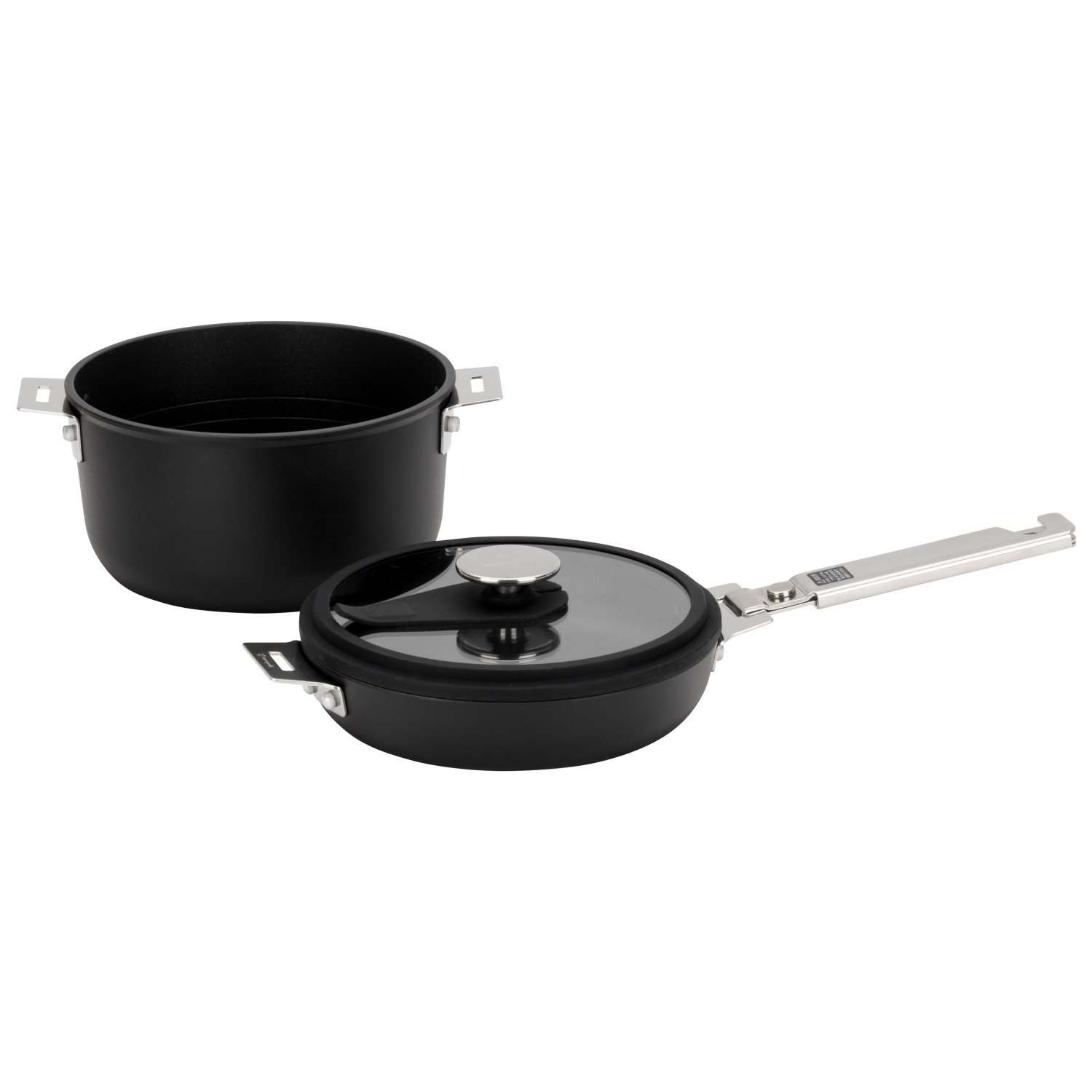 - pan (2,5 l): koekenpan (0,9 l); glazen deksel; afneembare greep