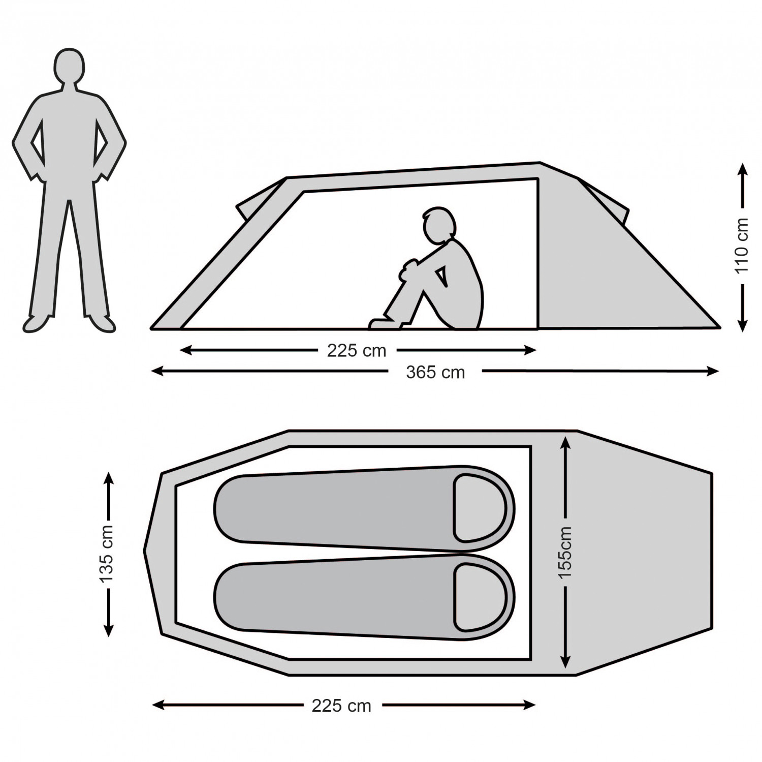 - 365 x 165 x 110 cm (l x b x h)