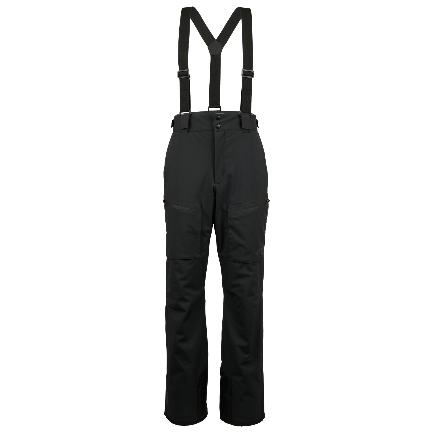 - afneembare bretels, geïntegreerde gamaschen, verstevigde zomen, ritssluiting aan de broekspijpen, verstelbare tailleband