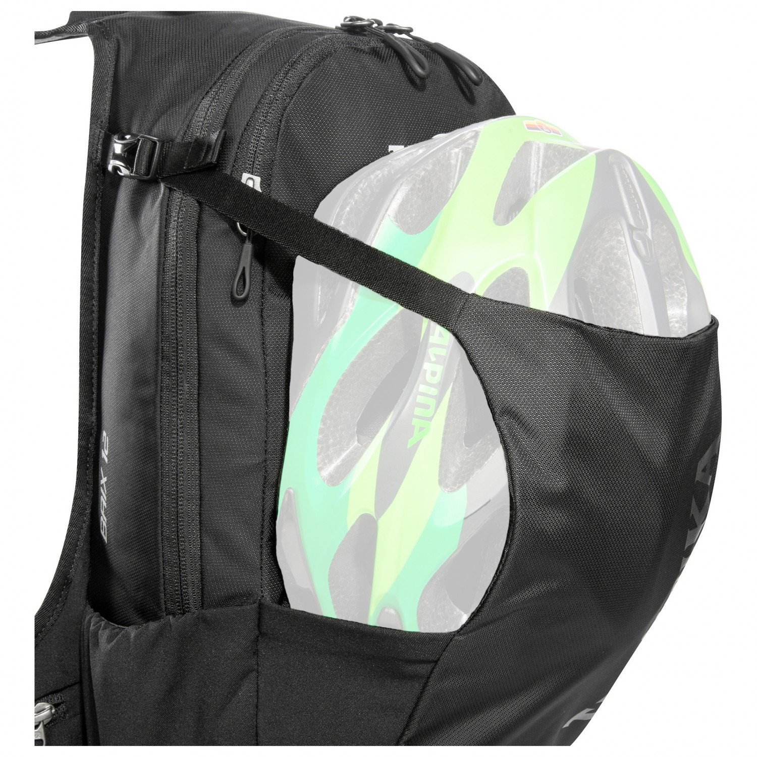 - 2 zijvakken, brillenvak, voorvak, helmbevestiging, zak op de heupband, achterlichthouder