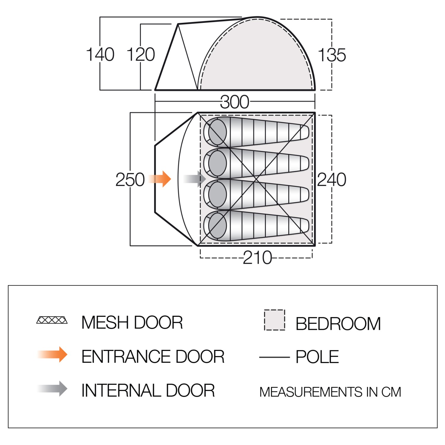 - 300 x 250 x 140 cm (l x b x h)